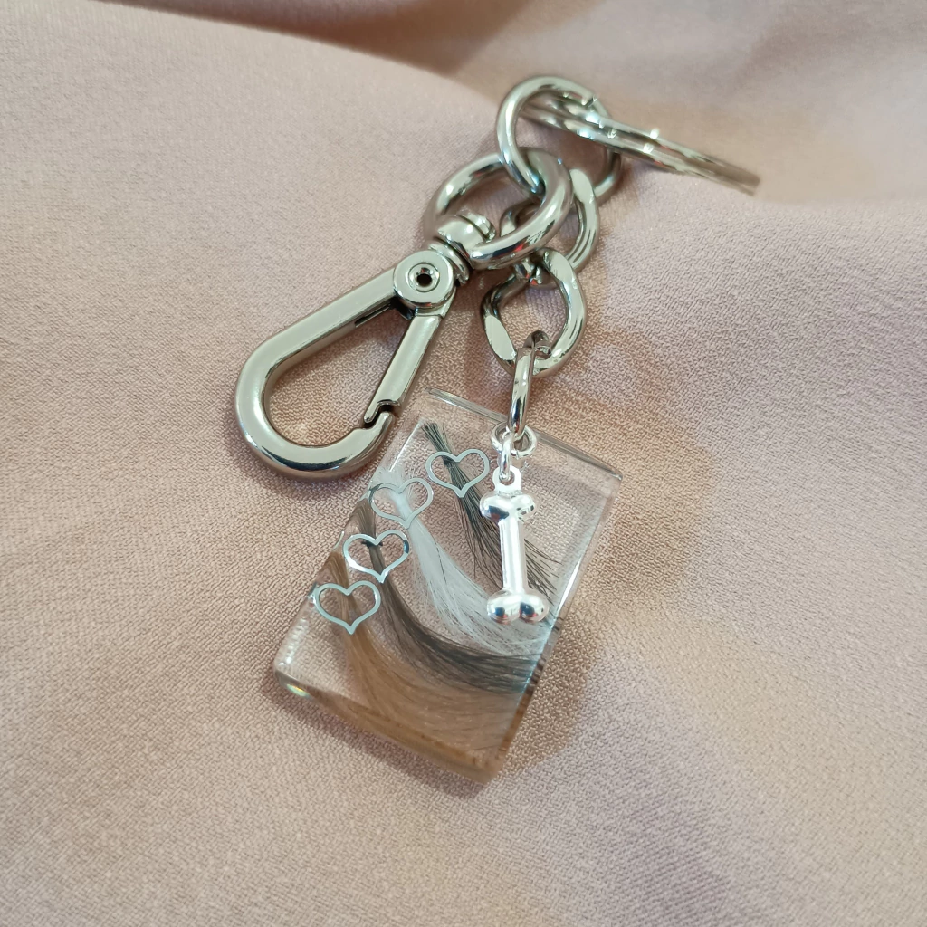 Chaveiro completo feito com os pelinhos de 4 pets, 2 gatinhos e dois cães.