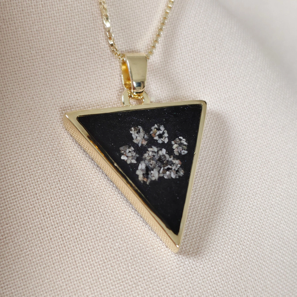 Pingente triângulo com aproximadamente Largura 2,2 cm Altura 3cm
